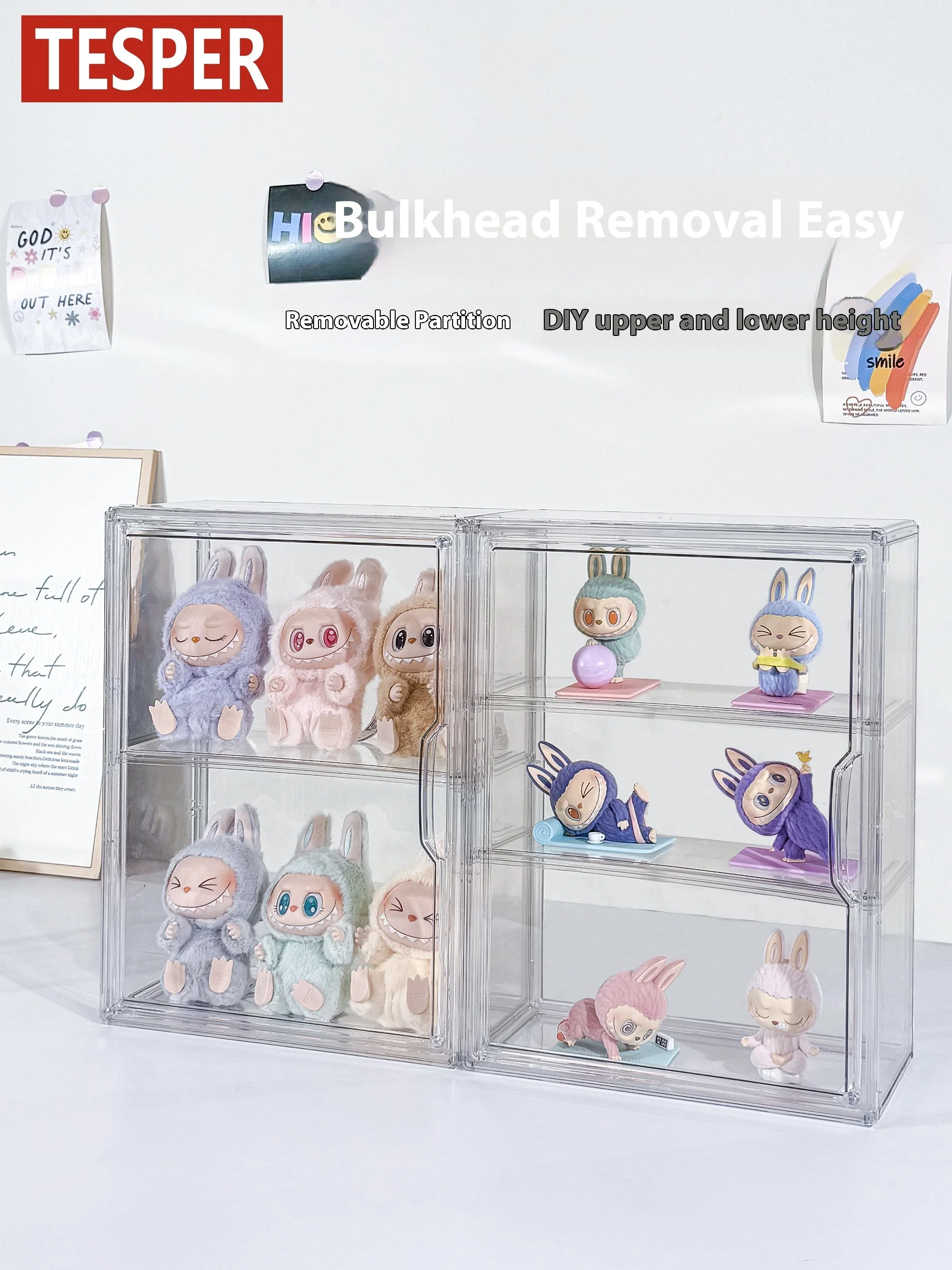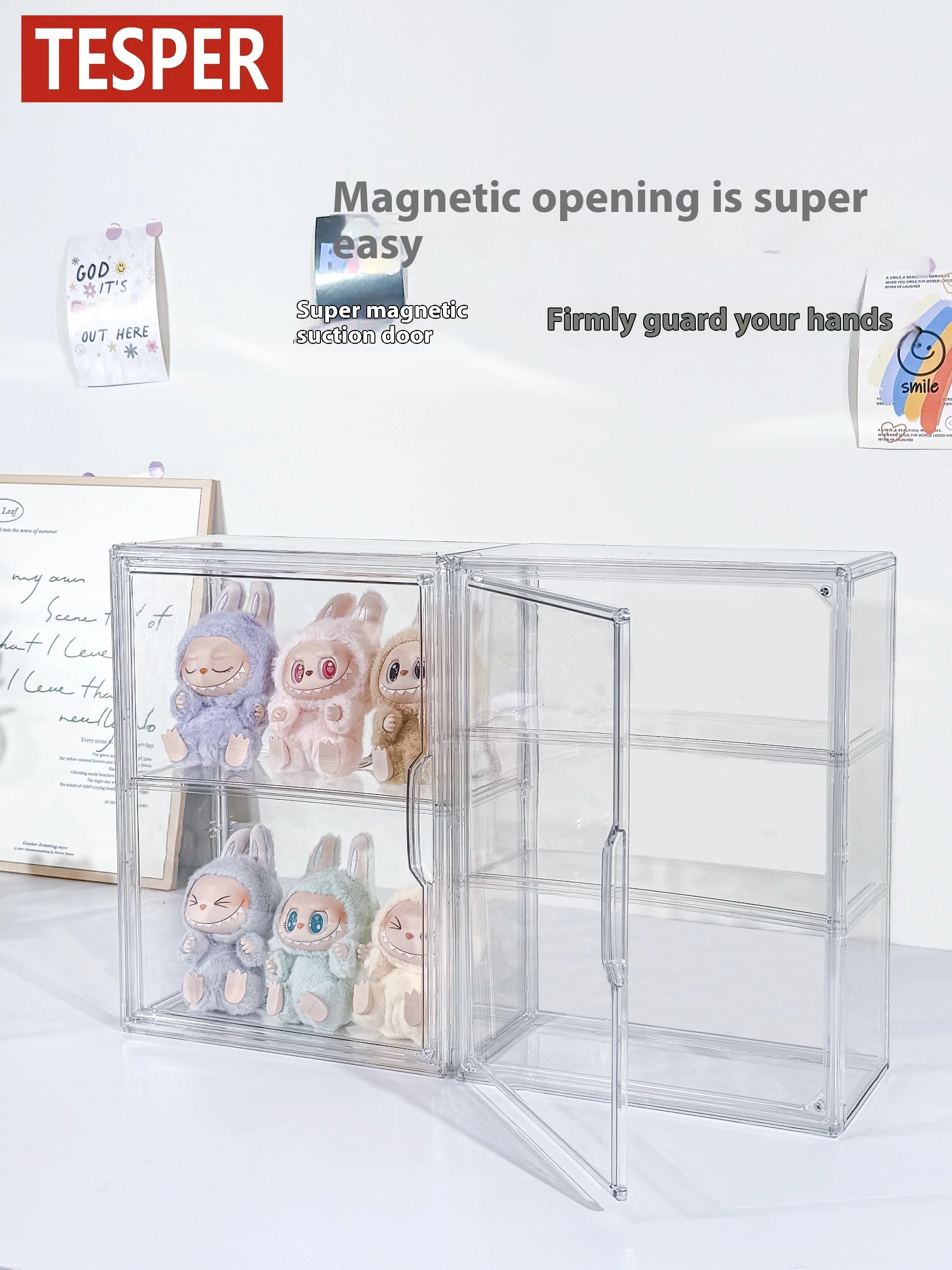 1/2/3 Layers Labubu Storage Box Transparent Acrylic Display Boxes Doll Organizer Desktop Dustproof Cabinet Home Storage