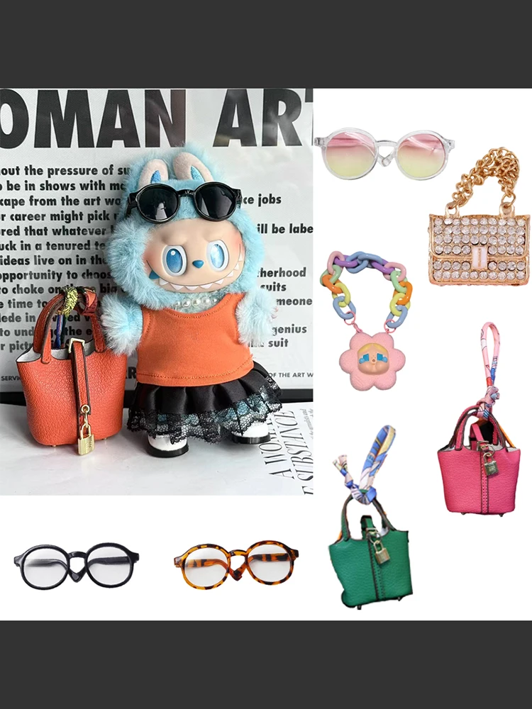 17Cm Labubu Fashion Handbag Color Chain Crossbody Bag Diamond Shining Gorgeous Bag Fashion Sunglasses