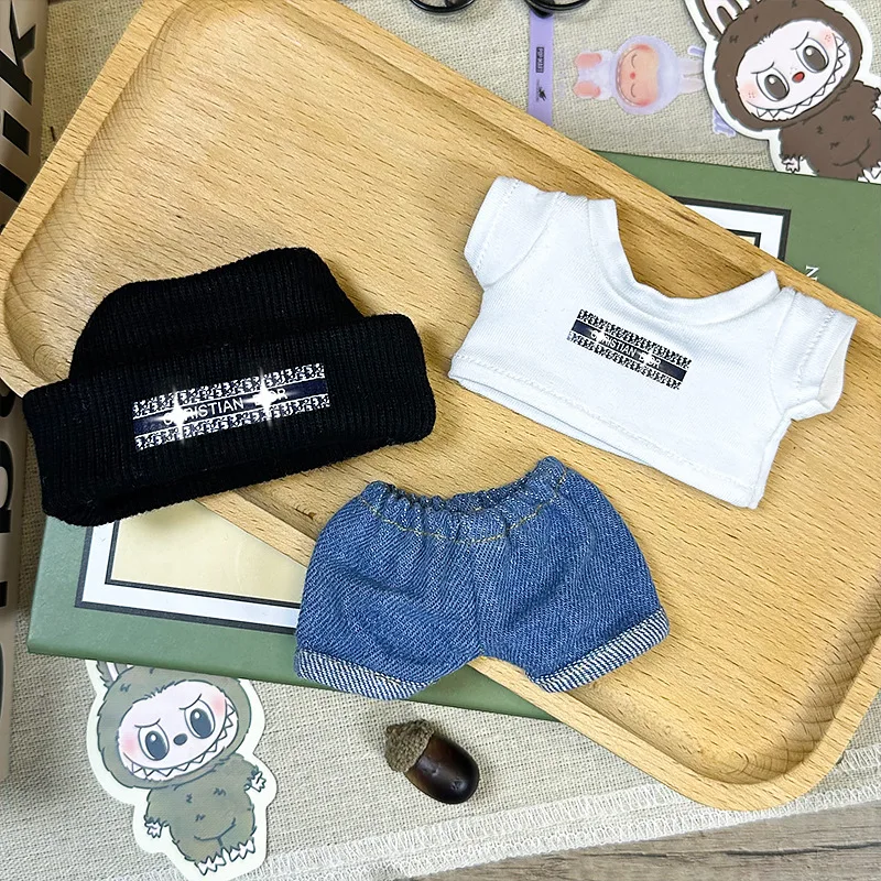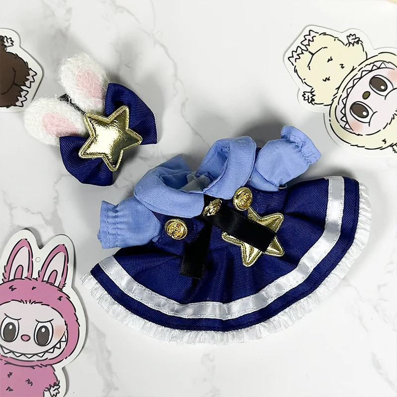 17Cm Labubu Mini Plush Doll Clothes Outfit Accessories Labubu Clothes Vinyl Doll Pendant Shark Suit Palace Flower Skirt Clothes
